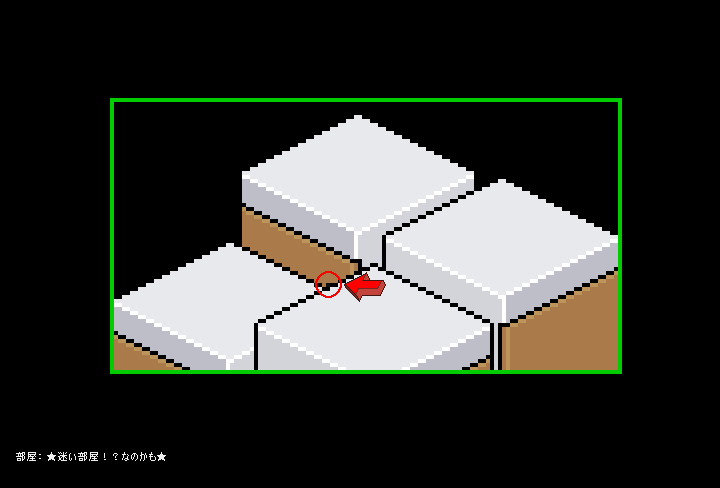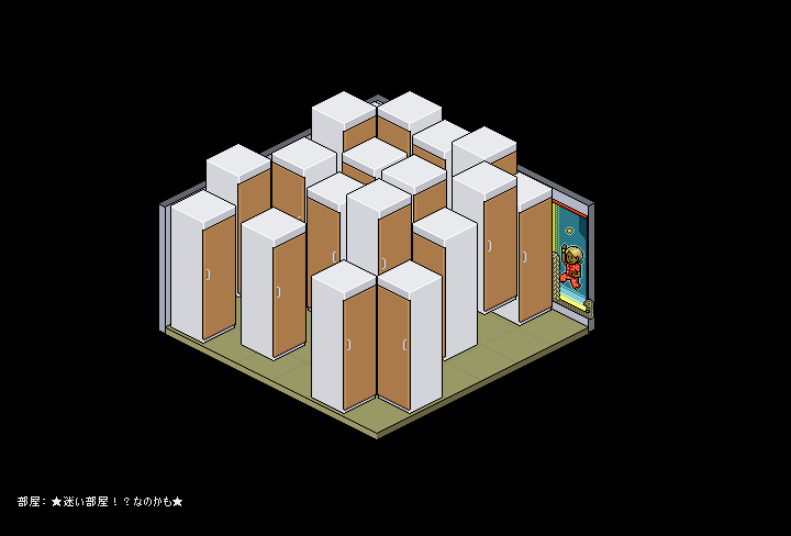 おさらいをすると、「この部屋に入ったらまず、一見入れなさそうな真ん中あたりのテレポをダブルクリックして手前まで進み(自分の姿は見えませんが)もう一度ダブルクリックしてそのテレポに入り、別のテレポから出てきたら(あいかわらず自分の姿は見えませんが)そのまま隠れているテレポの1ドットをダブルクリックする」。