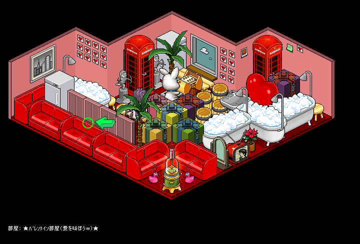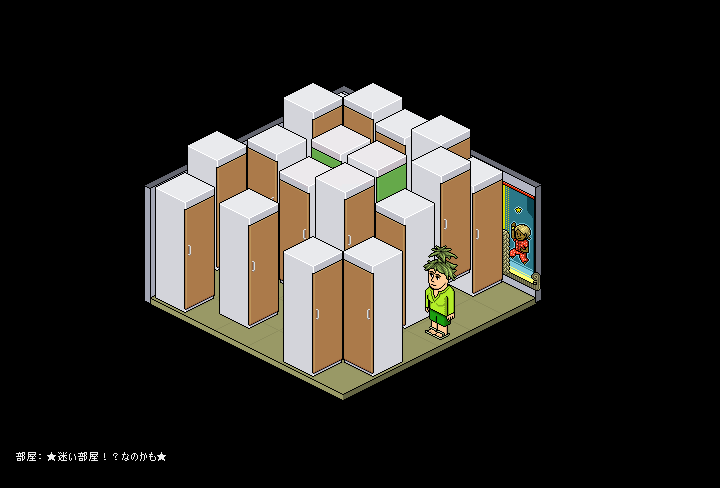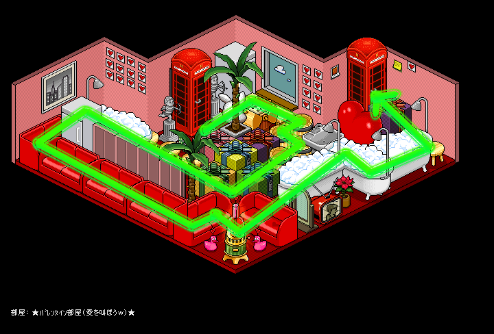 これは、「途中に障害物がなければ、ダブルクリックして何かが起こる家具をダブルクリックするとその手前まで自動的に進む」というHabboホテルの基本的なワザ(