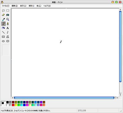 どこでも構いませんので、ペイント内のどこかにマウスポインター(鉛筆ツール)を置いたまま、
