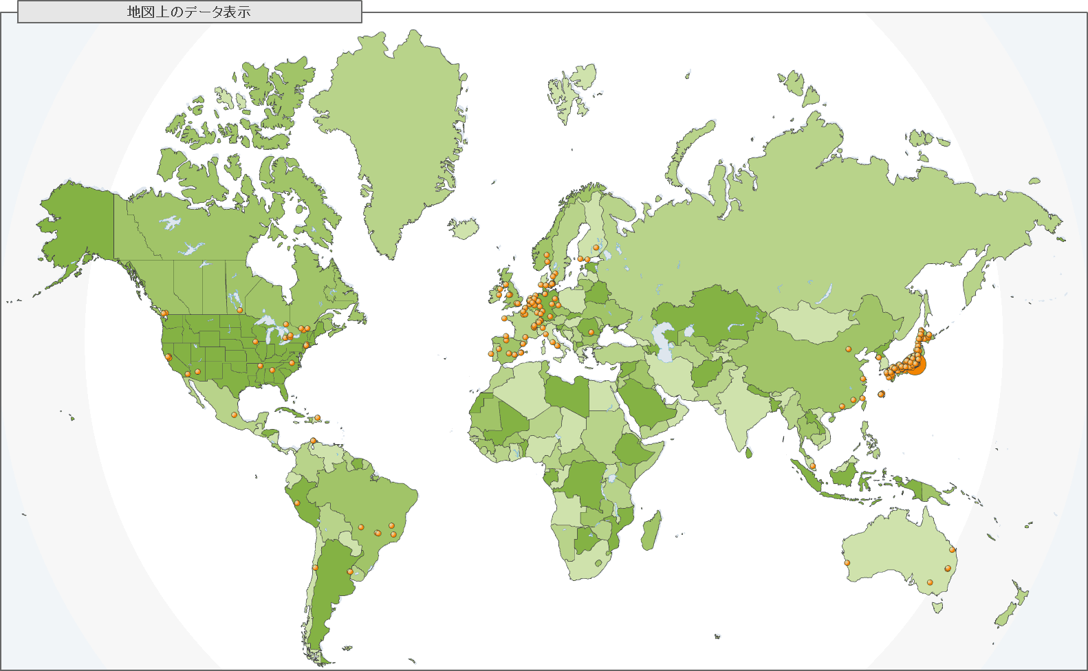 10月8日〜11月30日の間の訪問者のアクセスポイントを地図で表したものです。小さい丸は約100人、大きい丸は約1000人です。